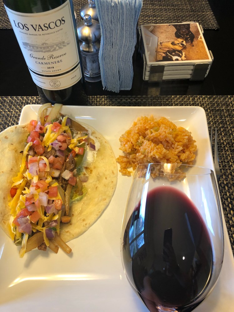 The Carmènére bottle poured an inky, deep ruby wine into the glass and left faintly dyed legs on the sides of the glass as I swirled it. When I lifted the goblet to my nose, I noted smells of baked blackberries, blueberry jam, blackberry bramble, black plums, black currants, and vanilla. Once I finally got a sip, this dry wine had a significant level of acidity and tannins while feeling luscious on the palate. It tastes of those same baked blackberries, black plums, blackberry bramble, and added toasted oak as well as its telltale herbaceous quality. Carmènére is noted for having obvious hints of green bell pepper (which can be pungent if the wine grapes were under ripe at harvest). This trait is the reason I have selected to pair this bottle with steak fajitas. It is also what makes this red wine very vegetable friendly. It would be beautiful with a pasta dish containing roasted veggies and tomato sauce. Overall, this bottle was definitely worth the 30 minute drive to pick it up! Los Vascos Carmènére is a wonderful example of what this varietal is supposed to encapsulate.