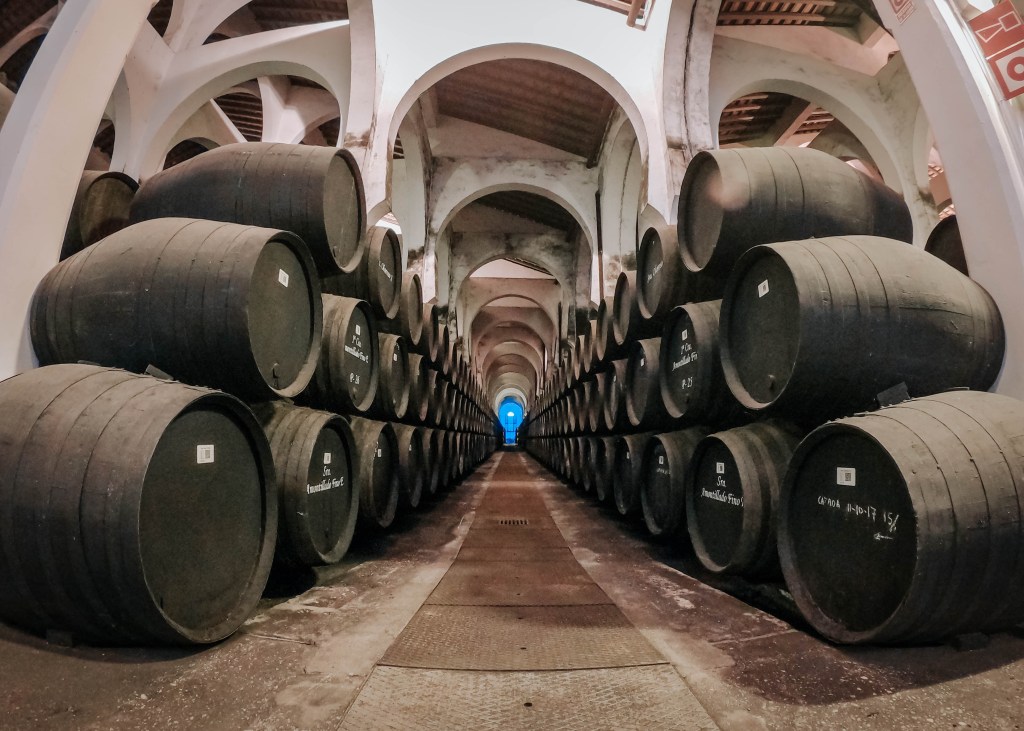 This week, I will be featuring five different styles of Sherry. I know when I say “Sherry’, most people think of cooking sherry but I assure you, it should not be judged on that! They run the gamut from bone dry and salty, all the way to full syrupy dessert wine. Sherry wines originate from the Sherry Triangle in Southwestern Spain around Jerez. Sherry wines are made from Palomino, Moscatel de Alejandria, and Pedro Ximenez (PX) grapes. Palomino is the most common and accounts for at least 95% of sherry. While all Sherry is fortified (meaning alcohol is added above what the wine has naturally occurring), the styles of Sherry differ in their production methods, which we will also discuss along the way!