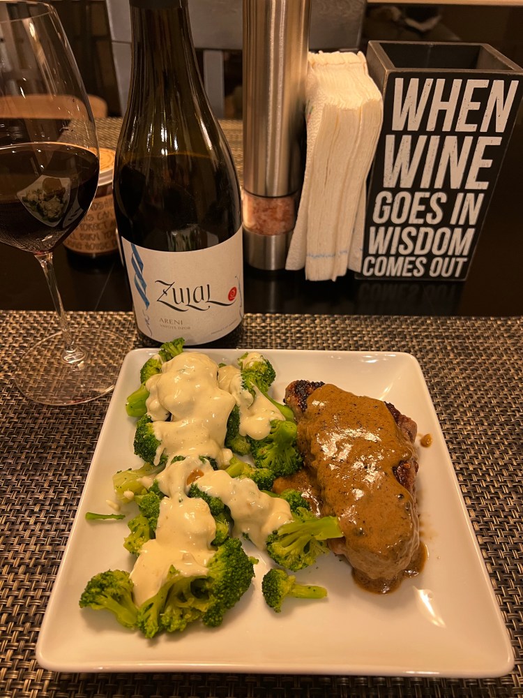 Over the last couple days, I finally decided to uncork a couple bottles I purchased and I see what the fascination was about and I was not disappointed! First, I rang in the new year, and mourned the loss of Betty White, with a bottle of NV Keush sparkling wine. It consisted of 60% Voskehat and 40% Khatouni, both are indigenous grapes to Armenia. It was made using the traditional method, just like champagne. Surprisingly, it had minimal notes of bread from lees aging. Instead, it had bright citrus flavors with notes of honeysuckle and pears. It was delightful with my appetizer smorgasbord for the evening! I enjoyed the winemaking methods that allowed the character of the fruit to shine through. Second, I sampled a bottle of 2018 Zulal Areni. This was a light red wine with medium acid and light tannins. It had wonderful red fruit notes like cherry, cranberry, and red currant with hints of black pepper, perfect to pair with my steak au poivre. I would happily drink both bottles again! These wines were unique but complex and delicious! If you wish to purchase wines from Armenia, storicawines.com is a great place to start!