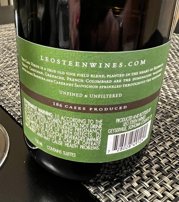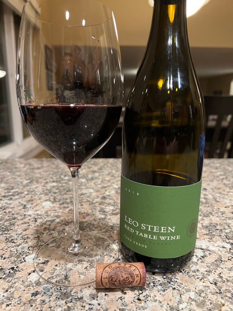 The wine I selected to sample this week is a 2018 Red Table Wine from Leo Steen that I picked up last weekend on a trip to Sonoma. The grapes are grown in the Redwood Valley AVA, north of Sonoma County. Instead of pulling out the over 70 year old vines, the vineyard found renewed life by receiving some desperately needed love from a farmer. As a result, this medium ruby wine had a rich, complex taste. It had aromas of red cherries, pomegranate, licorice, wintergreen, and cranberries. It had a noticeable woody scent that was more reminiscent of thin, woody stems than smoked oak barrels. On the palate, it had bright acidity with great red fruit flavors which were followed by wet stone and the faintest hint of wintergreen. At first, the tannins gave the impression they’ll be grippy but they rapidly smoothed out and toned down. This wine is enjoyable to drink now but will continue to be great for years to come as well! This red blend also had a wine grape, French Colombard, in it. This gave me #173!