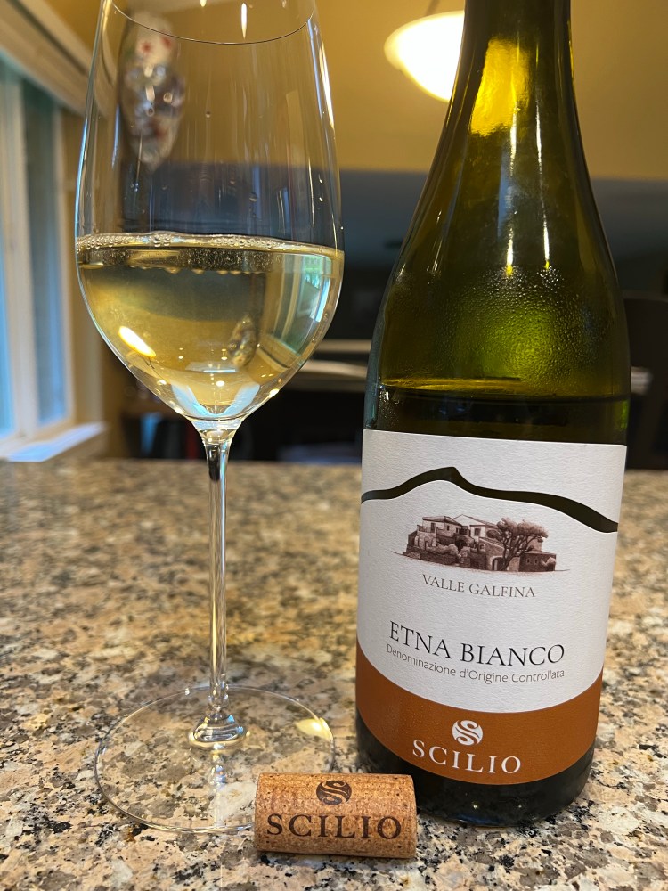 I chose a bottle of 2019 Scilio Valle Galfina Etna Bianco that is 100% Carricante to inch closer to my 200th grape variety. Aromas of gardenia, orange blossom, honeysuckle, white peaches, lemon and lime peels, white grapefruit, and wet stone rose from my glass of pale lemon wine. Its watery legs wasted no time trickling down the sides of the goblet. The refreshing level of acidity wasn’t enough to make me pucker but did wake up my salivary glands. While I sipped this dry wine with light body and moderate alcohol content, I thought of how lovely it would be on a nice summer afternoon. Since I live in the Pacific Northwest, we haven’t had many of these yet this year though. The aromas were all apparent on the palate but didn’t linger too long, requiring me to take more frequent sips. This bottle was bright and young. It probably will not improve over time but it was lovely to drink now. Carricante would be fantastic with light fish, seafood, or white meat dishes. As I sipped it, I couldn’t help but think how delicious it would be with a pea, prosciutto, and parmesan risotto. This bottle accounted for wine variety #195 for me!