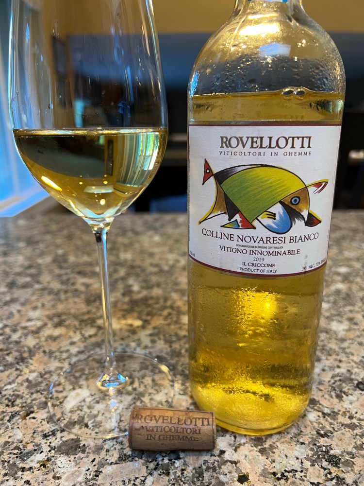 The bottle I drank this week was a 2019 Rovellotti Vitigno Innominabile Il Criccone from the Colline Novaresi DOC. It was a bright pale lemon color with watery legs and no petulance. The aromas of marzipan, lemon pith, gardenia, dill, and fresh grass all needed to be coaxed from the glass. When I took a mouthful, I was taken aback by how much body this wine was considering it had a moderate level of alcohol and high acid. The acid was like a taut guitar string that continued to reverberate long after being strummed. There were flavors of honey, lemon pith, garden fresh herbs, and an earthiness from the minerality. The acidity also accentuated the white gummy bear/pineapple flavor, which was a welcomed bonus. This wine was nicely balanced and unexpected. This wine would pair wonderfully with a light fish dish, antipasta, or an herb roasted chicken. I was quite pleasantly surprised by the character this wine possessed and look forward to having more!