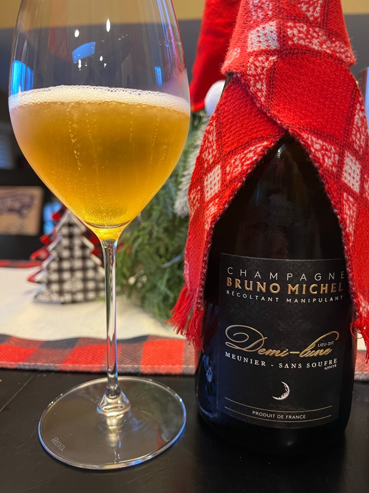 This week, in preparation for New Year’s Eve, I drank a non-vintage Bruno Michel ‘Demi-Lune’ extra brut champagne made with 100% Pinot Meunier. Champagne and many sparkling wines are non-vintage because they are almost always blends of multiple vintages. This allows a champagne house to offset poorer vintages, which can be an issue in the colder climate, as well as create a consistent flagship style so ensure the consumer is getting a fairly standard product with each release. Extra brut refers to the level of sugar in the wine, with extra brut and brut nature being the driest sparkling wines and doux being the sweetest. This wine was a medium lemon-gold color with persistent, delicate bubbles. There were marked aromas of brioche and freshly risen dough while pouring my glass. In addition, almond, lemon peel, and apple cider became more evident as the wine had a bit more time to open up. The mousse gently tickled my palate as it foamed to fill my mouth. This wine had a refreshing acidity while maintaining a medium body. Tastes of clementine orange peel, white grapefruit juice, fresh orange blossom, white peaches and yellow pears, all highlighted with a chalky salinity, made this wine fascinating and complex. These notes slowly faded from the palate between sips. After trying the wine, I looked it up and was surprised, and intrigued, to find this wine is a single vintage but can’t be labeled as such because it was only aged on the lees for 2 years, not the 3 required by French wine law in order to print the vintage year on a bottle of Champagne. The 2 years of aging is likely due to the fact this wine only contains naturally occurring sulfites (none added during the winemaking process as a preservative) and because Pinot Meunier is not known for its ageability. Also, the vines that grew the grapes are about 55 years old, which likely increased the complexity of the wine. This would be a wonderful bottle to open for the New Year, but alas, since I couldn’t wait that long, I’ll just have to open something else! Wishing you all a Happy New Year!
