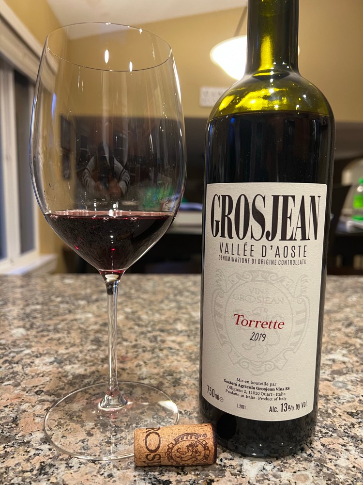 The bottle I selected this week is a 2019 Grosjean Torrette from Valle d’Aosta that I tried recently during a tasting at my local wine shop. According to data provided from the winery, the wine was comprised of 80% Torrette, with a blend of indigenous grapes including Vien de Nus, Doucet, Furmin, and Mayolet. It was a moderate ruby color with the faintest stained legs when I swirled the glass. Aromas of stone, soil, ground coffee, potpourri, smoke, red cherry, and pomegranate were evident when I worked to find them. This wine was dry with a moderate level of alcohol and tannin. The acid content was sufficient enough to elicit a pucker. On the palate, the red cherry aromas evolved to sour cherries and were accompanied by red currants and thimbleberries. These red fruit notes lingered on the palate and occasionally reminded me of Crunch Berries from Captain Crunch. They were combined with dried rose petals, perfume and a stoney minerality. This wine was interesting and complex while remaining youthful. It would be fantastic if served with a pork roast topped with a cranberry compote or a veal milanese.