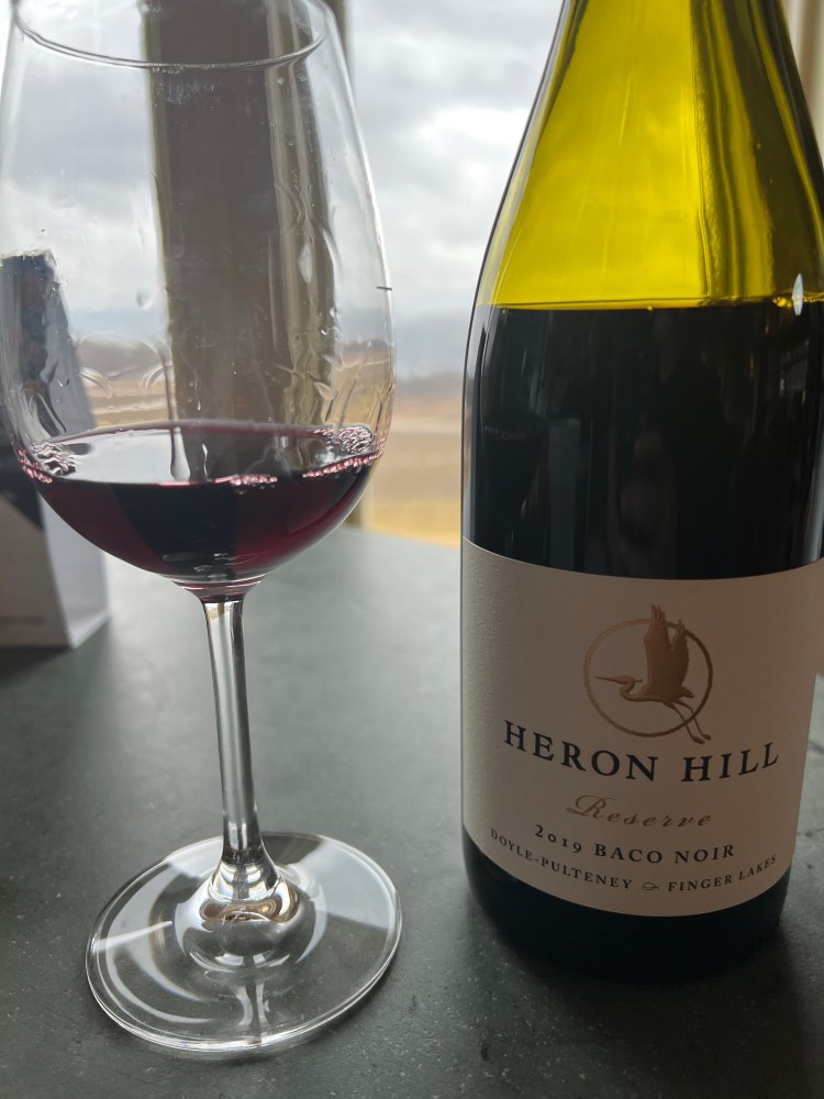 Last week, I found my first Baco Noir while visiting the Finger Lakes region. I tried a 2019 Heron Hill Baco Noir during my tasting. Heron Hill was started by John and Josephine Ingle in 1977 and they continue to own the winery to this day. When seeking tastings, I was impressed by the variety of wines they offered and was excited for my tasting experience. When the Baco Noir was poured, I noted it had a light, bright ruby color with pale legs. Aromas of red and black cherries, cranberries, red currants and a hint of smoke rose from the glass. The dry wine had a bright acidity with a moderate level of alcohol and low level of tannin. It was a lighter bodied wine with flavors of red fruit on the palate, including unripe pie cherries, cranberry juice, raspberries, under ripe wild strawberries and red currants. There was also an earthy minerality to the wine that continued on the lengthy finish. This was a wine to drink now while it has its vibrant character. This bottle would pair great with tomato based dishes, BBQ, hamburgers, fattier types of fish, and chili.