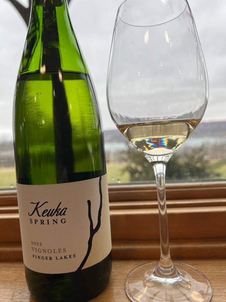 At a recent tasting, I sampled a 2022 Keuka Springs Vignoles from the Finger Lakes. Keuka Springs is a family owned and operated winery that was founded by Len and Judy Wiltburger in the early 1980’s. They are also known as one of the better producers of Vignoles in New York. When my glass was poured, I noted a viscous, pale lemon wine with slow moving legs that trickled over the wine that coated the goblet. It exhibited complex aromas of pink and white grapefruit, meyer lemon peel, coriander, ripe pineapple, and nutmeg. On the palate, this off sweet wine was balanced with significant levels of acid. It was low in alcohol, but higher than most of the dessert wines we tasted. Flavors of juicy pineapple, coriander, lemon curd, and kaffir lime were preceptable. This wine was surprisingly fascinating and delightful. This wine would pair well with Thai curry or Tom Kha Gai soup, as well as light blue cheeses such as camembert.