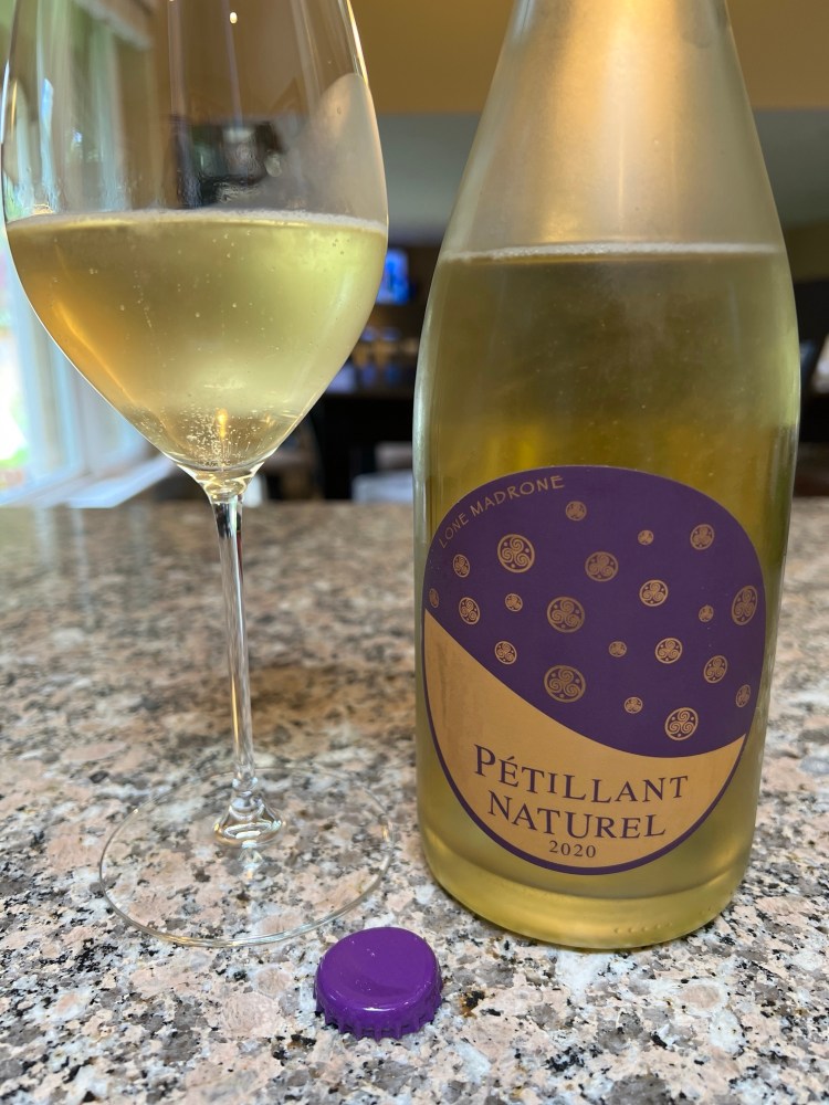 This week, I drank a 2020 Lone Madrone Pet Nat made with 100% Chenin Blanc. This wine has a pale lemon color and persistent streams of tiny bubbles rising to the surface. There is also a layer of sediment that has collected on the bottom of the bottle as it has chilled in my fridge. There are aromas of lemon pith and lemon juice, green apple, white pear, wet stone, and yogurt. This dry wine has slightly viscous texture and low alcohol. The sparkling character is light and refreshing but definitely less than a traditional method sparkling wine. There is a significant level of acidity but not harsh. This wine is very reminiscent of a fermented cider and makes a great alternative to drinking beer! The freshness of this wine was surprising to me because these wines are intended to be consumed while they are young. This bottle has been in my collection for a couple years and has held up nicely.