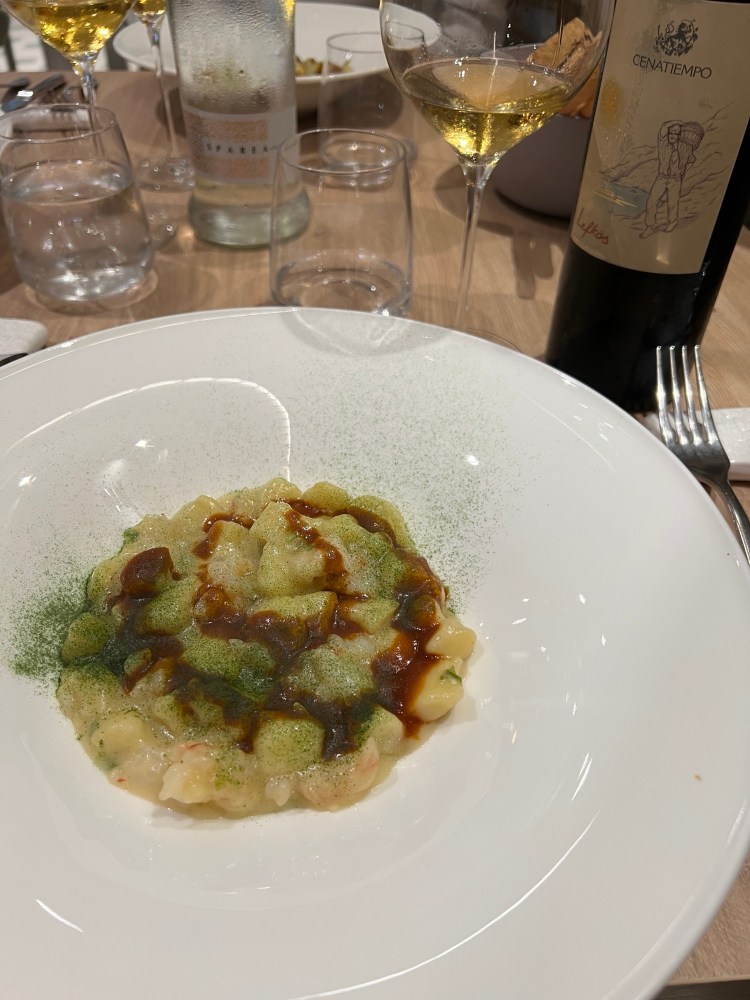 While on my trip to Alba, Italy, I tried a 2022 Cenatiempo Lefkos from Ischia DOC. This wine was a blend of 90% Biancolella and Forastera with the remaining 10% being listed as other native grapes. This wine was a medium yellow in color. It had bright aromas of tropical fruit, saline and fresh herbs. I shared this bottle with some others and we all paired it with gnocchi that had a shrimp and parmesan butter sauce. This wine was fuller bodied than we anticipated but the weight of it matched the dinner while the acidity helped cut the richness of the sauce. The saline notes matched those in the dish. The tropical fruit notes were a bright compliment to the meal and paired well with the concentrated shrimp in the gnocchi. We were all pleasantly surprised by this bottle because prior to ordering it, none of us were familiar with the region or the grape varieties. For a random white wine picked from an extensive wine list, this wine was a refreshing change of pace after a long day of tasting Barolo.
