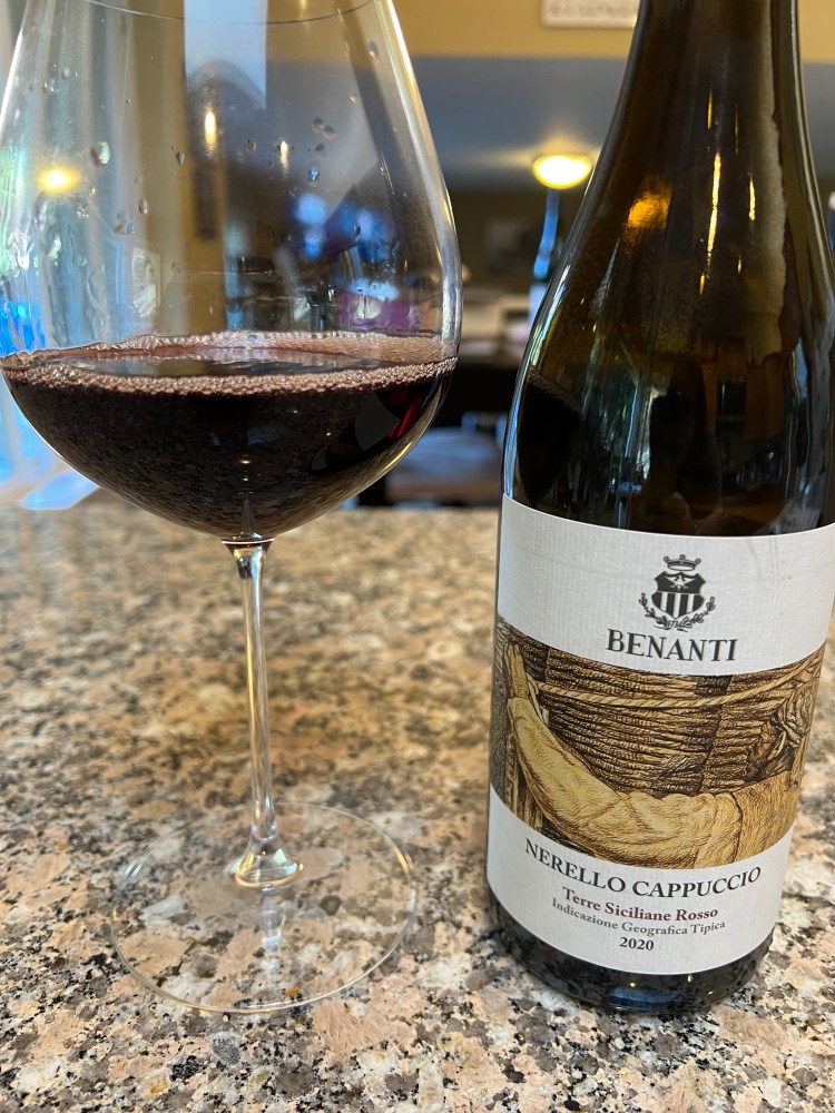 This week, I had a 2020 Benanti Nerello Cappuccio, Terre Siciliane IGT. Benanti is one of the producers that makes a 100% Nerello Cappuccio. I have been looking to try this grape for a while and found this bottle at my local wine shop on a recent shopping trip. Most blends I have found from this region have consisted of Nerello Mascalese and other red grapes from the region. This varietal wine is a pale ruby color with tawny highlights. It has aromas of fresh and dried red cherry, cranberry, cinnamon stick, white pepper, fresh thyme, mint and rocky minerality. The bright acidity balances the substantial firm tannins in the medium bodied wine. It is dry with a moderate level of alcohol. The intense red fruit, spice and herbal notes slowly dissipate on the long finish. I was surprised by the level of concentration of the flavors in this wine as well as the amount of textural components. After reading more about the grape, I was curious how expressive this bottle would be. After trying it, I found it to be a great representation of what this grape can be. This would be a wonderful wine to have with grilled steak, charcuterie or aged hard cheeses.