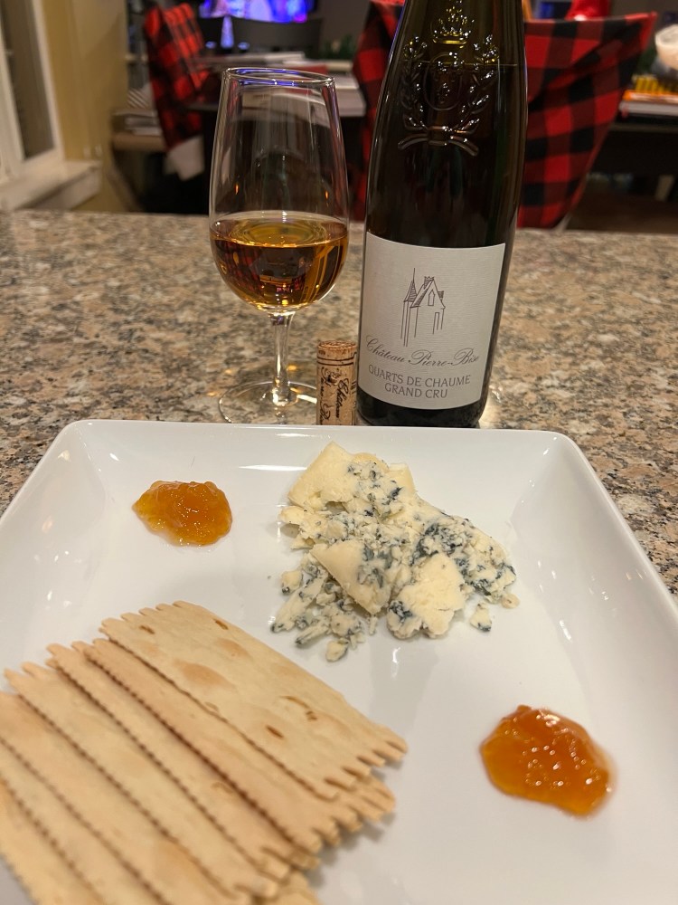 This week I drank a 2022 Château Pierre-Bise Quarts de Chaume Grand Cru AOC. It is a light amber color. This wine has aromas of honey, raisins, dried apricot, candied orange peel, dried peaches, caramel, and honeysuckle. On the palate, the fresh acidity helps balance the significant sugar level. The grapes for this wine are harvested when they can produce a minimum level of alcohol of 17.5% in the final wine. This wine has 11% ABV and the remaining sugar level is about 170g/liter. The remaining sugar creates a fuller bodied wine. The complex flavors of dried and candied fruits are vibrant and comforting on the palate and slowly fade away on the extended finish. This is a great bottle to drink now or forget about for 10+ years. I paired this bottle with blue cheese and peach/apricot preserves for a delicious nightcap!