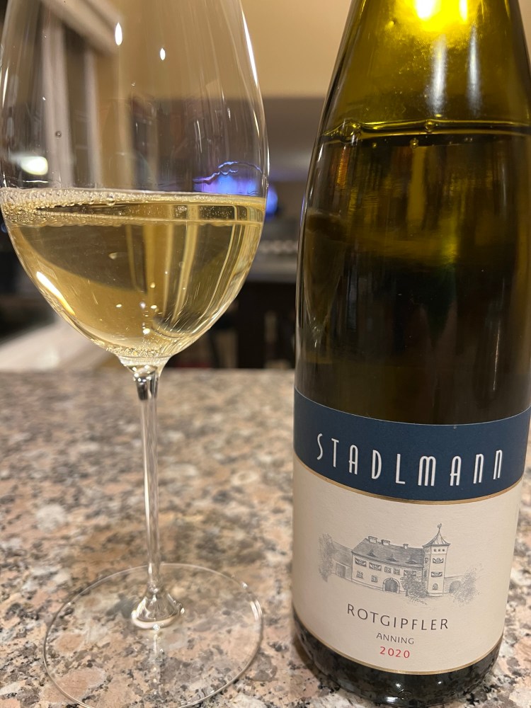 The wine I drank this week is a 2020 Stadlmann Rotgipfler from Thermenregion. This wine is a pale lemon color with aromas of citrus fruits like white grapefruit and lemon peel. There are also notes of green apple, yellow pear, fresh herbs, honeydew, white flowers and saline minerality. This dry wine is fuller bodied with a moderate level of acidity. The level of alcohol is at the low end of moderate. The overt fruit, floral and herbal notes dominate the front and mid palate then subside to leave a somewhat bitter pithy and saline finish. This wine is rich enough to pair with a rich sauce on lighter proteins, like chicken with mushroom sauce or white fish and butter herb sauce. The weight of this wine makes it a comforting white wine for cooler weather.