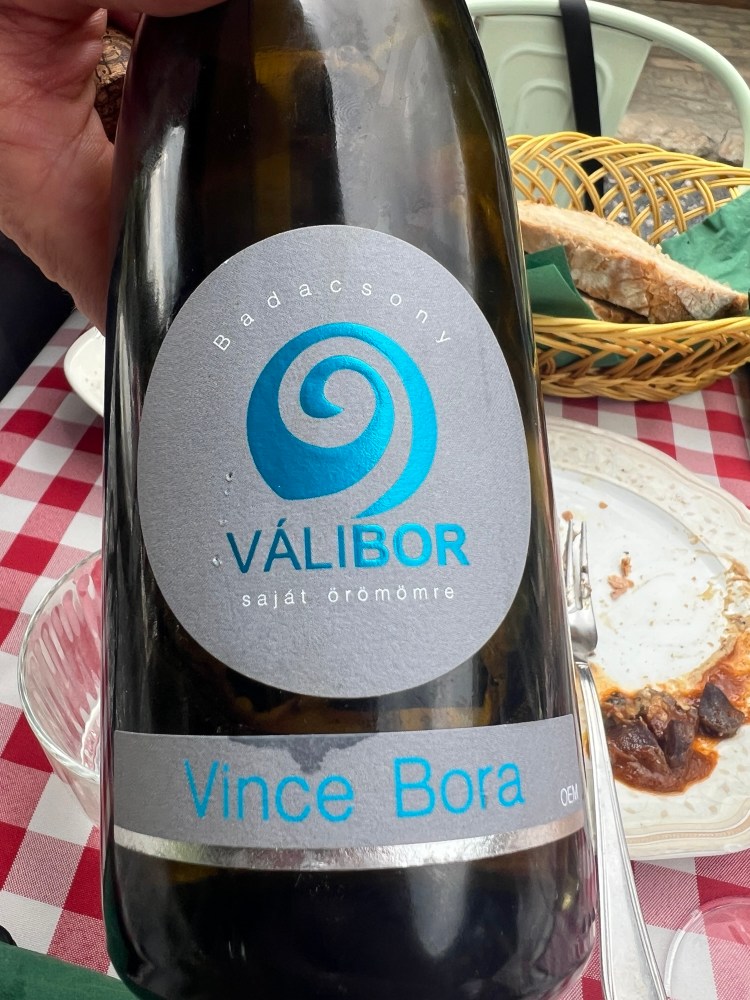 While wine tasting in Badacsony, I tried a blend of Muscat Blanc à Petite Grains, Hárslevelű, and Zeus. This 2020 Valibor Vince Bora is a moderate lemon color with aromas of quince, lemon zest, white flowers, honey, vanilla and pears. It was named for their son Vince. It was aged in barrels to increase texture and add complexity. It is a dry wine with a fuller body and low alcohol content. It has a moderate level of acidity. On the palate, this wine shows ample tree fruits and citrus, along with vanilla from the barrel aging and some minerality on the extended finish. This wine would pair well with lighter meats or asian cuisine.